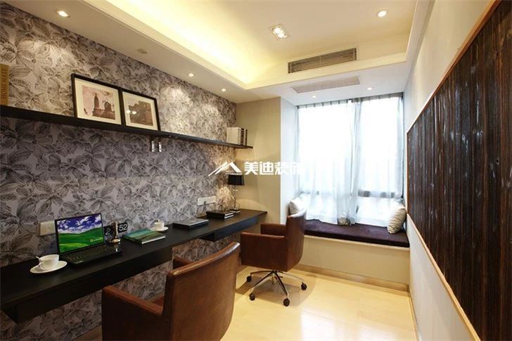 虽说书房的装修风格需要与房屋的整体装修风格相似,但是也要考虑到书房的功能性,应该展现比较雅致、清幽的风格效果。此外,书房的颜色要柔和,使人平静,最好以冷色为主,如蓝、绿、灰紫等,尽量避免跳跃和对比的颜色。