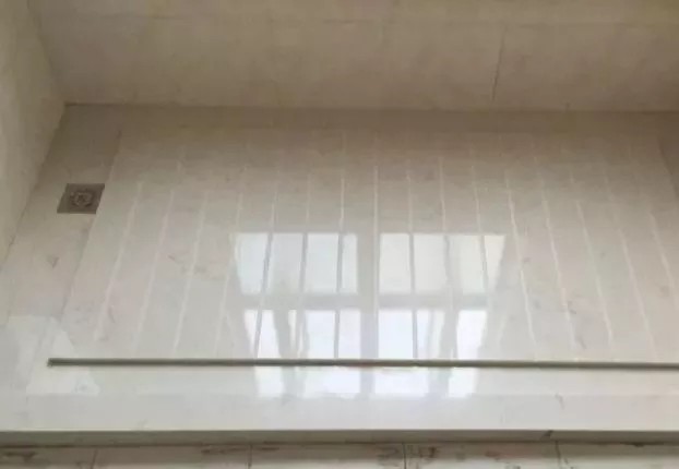 淋浴房地面铺上拉槽,因为凹槽的造型,水可以顺着凹槽快速排出,再经过排水槽进入地漏,地面不会产生积水。