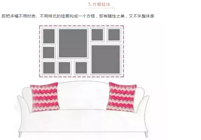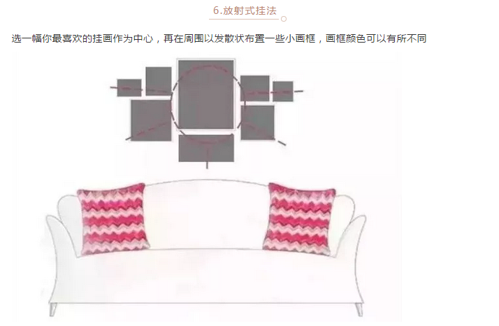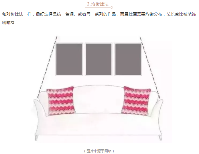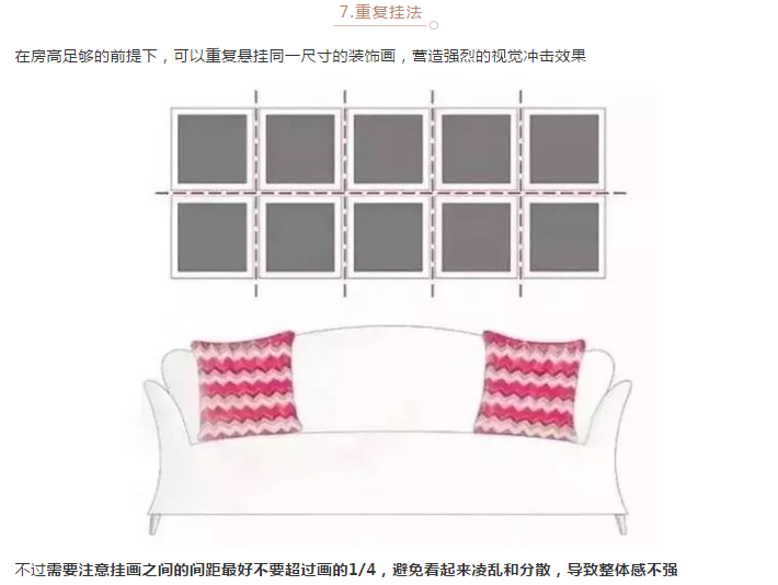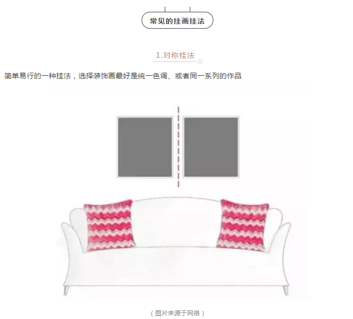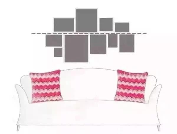 当然,挂画的排列组合不是一件简单的事情,但也有一些约定俗成的技巧,大家可以参考下图