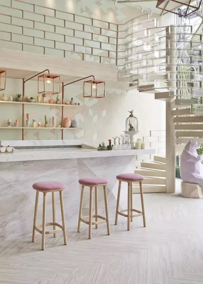 玻璃墙,这里说的玻璃墙可不是单纯的玻璃。直接用玻璃作为隔断,会令人担心安全上的问题,另外也会让人联想起办公室的氛围,不够温馨