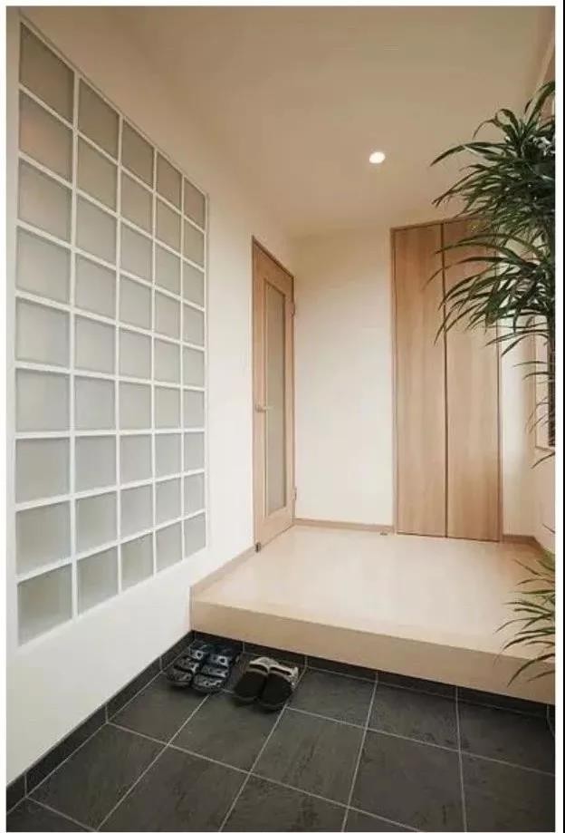 在狭长型的玄关或走廊采用玻璃砖作为墙壁隔断,增加采光量的同时又从视觉上拓展了空间效果,一举两得