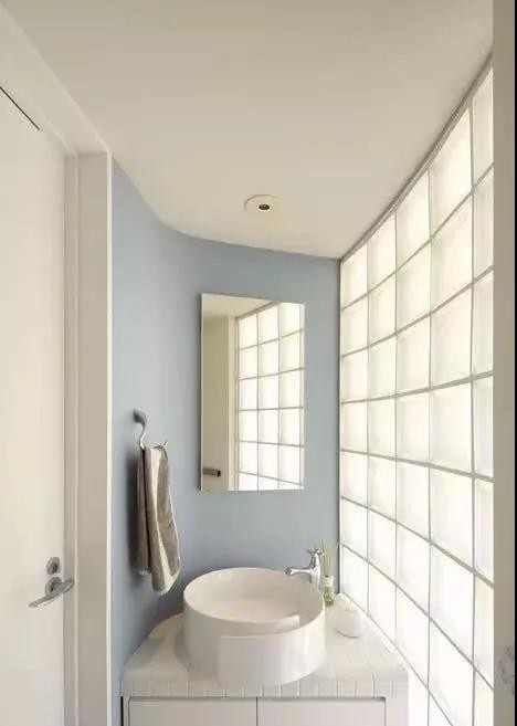 如果担心私密性的问题,可以在马桶和洗面室等干区采用透光不透影的磨砂玻璃砖