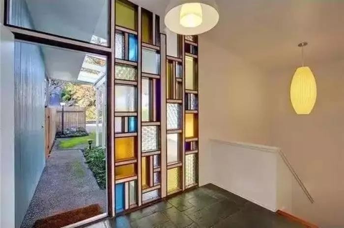 采用加入了色彩的玻璃砖还能够营造具有趣味性的光影效果,需要注意的是彩色玻璃砖的色彩不要超过三种,否则会过于凌乱