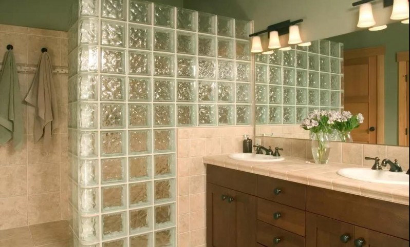 采用与玻璃砖相同规格或者比玻璃砖更大尺寸的瓷砖,以及相同的拼贴方式,呈现出的效果会更加和谐统一
