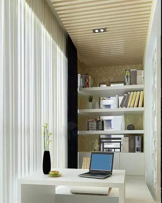 一套桌椅,或者简简单单的几块搁板,就能打造出温馨隐蔽的书房。落地窗可使用隔音玻璃,就不会受到噪音的困扰。