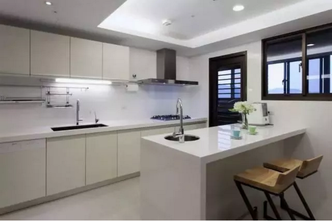 而且使用吧台来代替餐桌用餐也是别有情调的~另外注意,要是用吧台来代替餐桌的话,记得安上合适的吊灯哦。