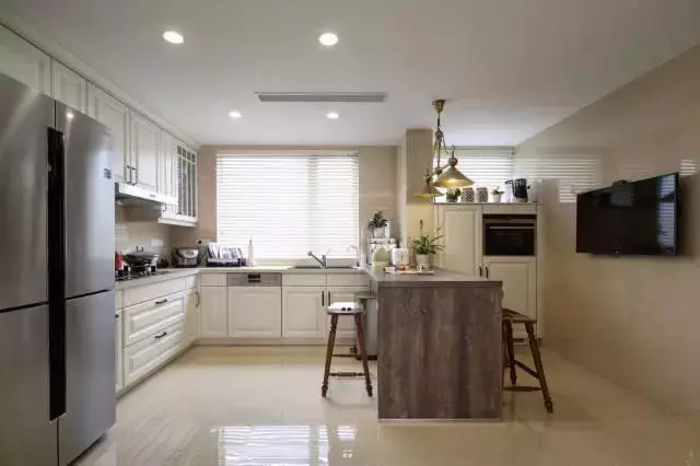 厨房中的吧台还是一个很好的烹饪辅助操作台,既避免了油烟问题,又解决了餐厅空间局促、采光通风不足的问题。闲暇时,可以在这里喝杯红酒,泡杯咖啡,尤为惬意。