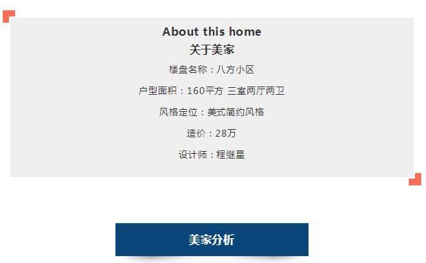 本期《美家记》的案例作品是业主彭先生的父母为他准备的婚房,现在是彭先生和爱人一起居住。设计师程继星为他们打造了一套美式简约风格的三居室温馨爱巢,整体给人一种简约大气的气息,没有繁复的空间布局,却很抓眼。