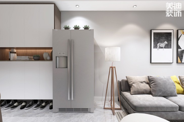 一般家庭在玄关都会设计一个鞋柜来放鞋子,但是很多时候脱下鞋就忘了放到鞋柜里,这便导致鞋子横七竖八地放在地上影响美观。其实有一个方法可以轻松解决这个问题,就是把鞋柜做高10公分,这样脱完鞋往鞋柜底部一放就可以了,是不是很简单。