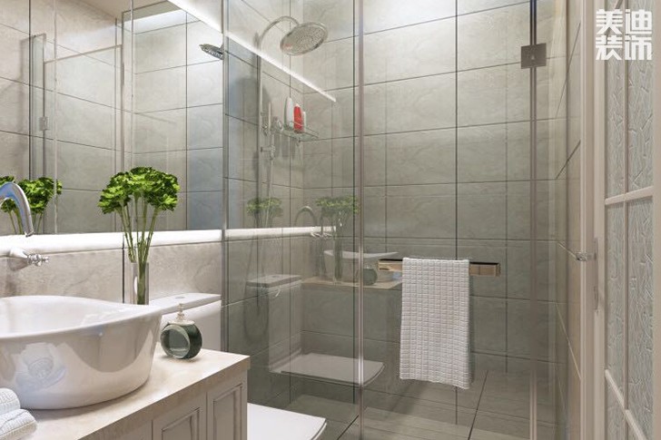 第二种方案比较适合大户型设计,整个卫生间看上去更加时尚漂亮,墙壁上采用了时下很流行的高级灰色,搭配这种浅色的大理石地板,在灯光的映衬下,显得非常时尚大气,利用玻璃门实现了空间的隔断,这样能够很好的保持卫生间的干爽,方便日常卫生的打理。