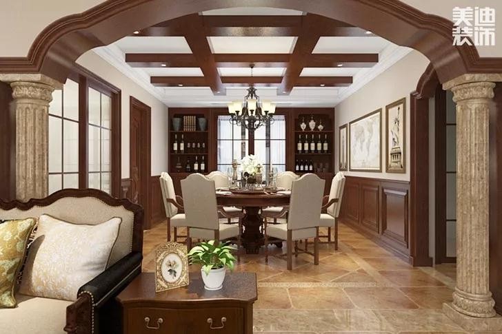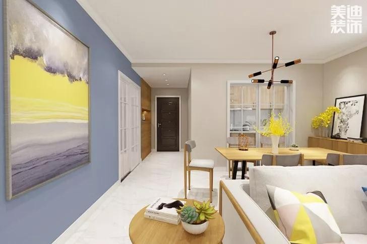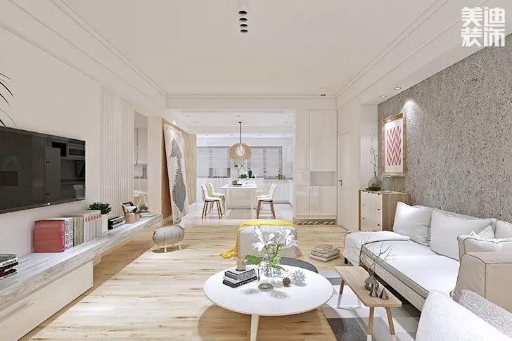 如果在吊顶造型方便不方便做区分的话,也可以通过在墙面的造型、用材、颜色等方面去做区别,让客餐厅空间相互打通又保持独立感。