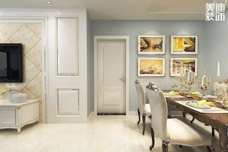 所谓地面分隔,就是在地面砖上做边线造型,这个做法通常都是综合了墙面、天花一起到的,适合一些相对较大面积的客餐厅区域。