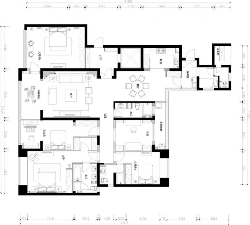 本场案例户型上改动不大,关键在于如何最大利用绝佳的地理位置优势,展现最完美的视觉效果,设计师准确把握这一优势,把家装成业主所希望的样子。