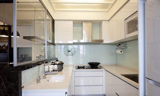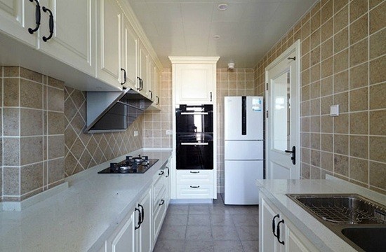 有这种想法的人大概不会亲自清洁厨房。表面凹凸不平的瓷砖若不勤擦勤洗,时间一久,油垢就会粘附在缝隙和微孔中难以去除,影响美观。因此在挑选诸如瓷砖、铝扣板吊顶、艺术造型门时,应以表面平坦为佳。