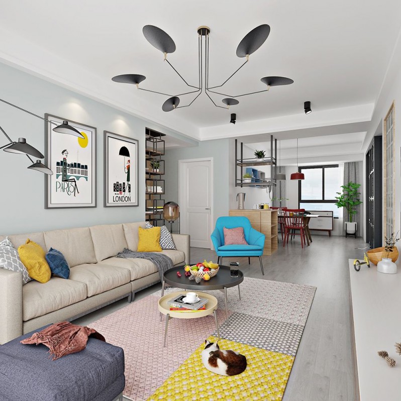 1、沙发与茶几之间的距离是30cm;如果摆放可容纳三、四个人的沙发,应该选择搭配的茶几大小=140*70*45。