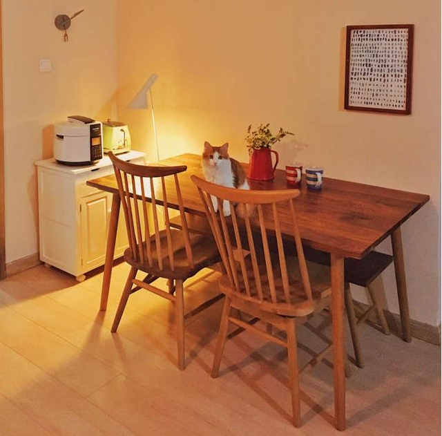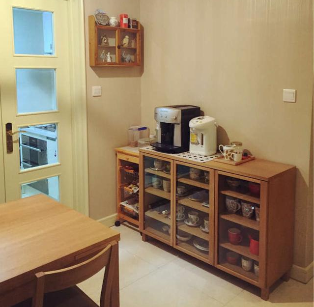 小尺寸的餐边柜,放在墙边刚刚好。并且电饭煲也可以放在台面上。