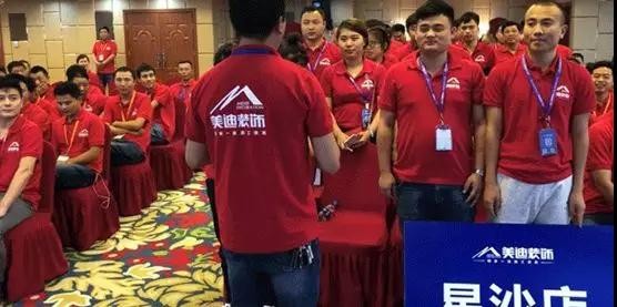 大会于下午四点正式开始,由美迪装饰营销中心常务副总经理贺军主持,在各门店项目经理与监理的的组织下,首先由我们的匠心工人发表了团队宣言。