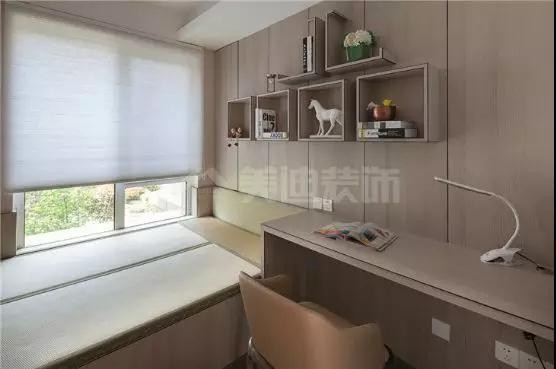 如果房间比较偏小,可以借鉴这个案例,看上去干净又整齐,完全不显得拥挤,区域划分也很明显。