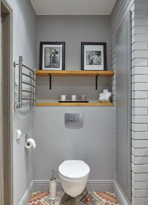 卫生间收纳空间不够,可以向马桶后方光秃秃的墙壁借啊。