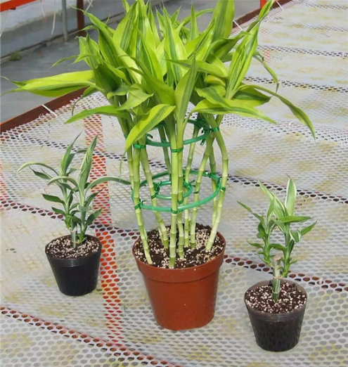 富贵竹,属常绿小乔木。富贵竹的美与它的吉祥名字分不开,其茎节表现出貌似竹节的特征,却不是真正的竹。中国有“花开富贵,竹报平安”的祝辞。富贵竹管理粗放,病虫害少,容易栽培,并象征着“大吉大利”。