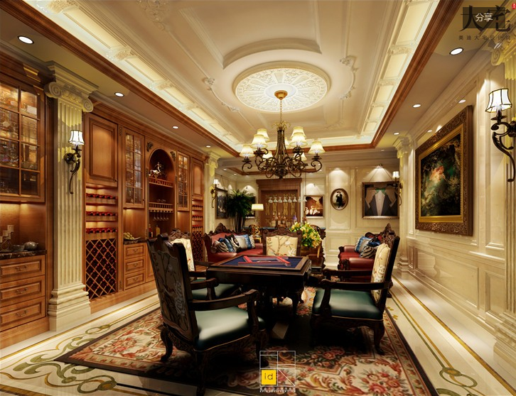 美式软装搭配的装饰偏向于突显特有的文化气息的艺术品,比如壁画等都是美式家具搭配的喜爱。美式风格的装修空间一般比较大,在大的环境中有一幅有特色的壁画能给人带来不一样的感觉。