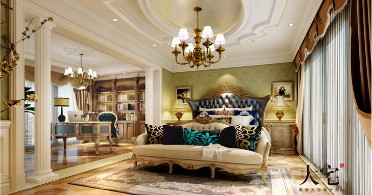 美式风格软装偏优雅,在灯的选择上通常搭配古典的壁灯或落地灯,在外观上要配合家居装修中的整体风格和家具的色彩造型。美式仿古家具一般会选用带有雕饰感的灯杆,若是豪华大气的真皮沙发则搭配金属光泽的灯杆更能突显客厅的现代感。