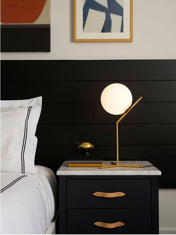 此款类型的床头灯可谓是懒人的福音,因为开关的位置触手可及。如果想要突出个性可以尝试左右不对称的效果,选择两盏不同造型的床头灯更能突出时尚感。