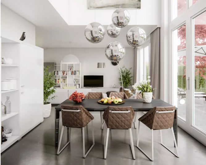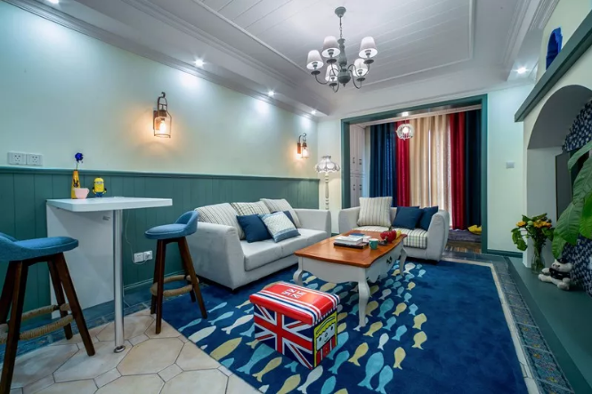 家具和布艺软装进行对比也是个好办法,比如室内色调以浅色为主,抱枕、窗帘、地毯等布艺软装的颜色接近,而沙发和椅子则颜色较鲜明,这样对比层次感强烈。再通过艺术壁画、特色吊灯等装饰品,提升整个空间的艺术品味。