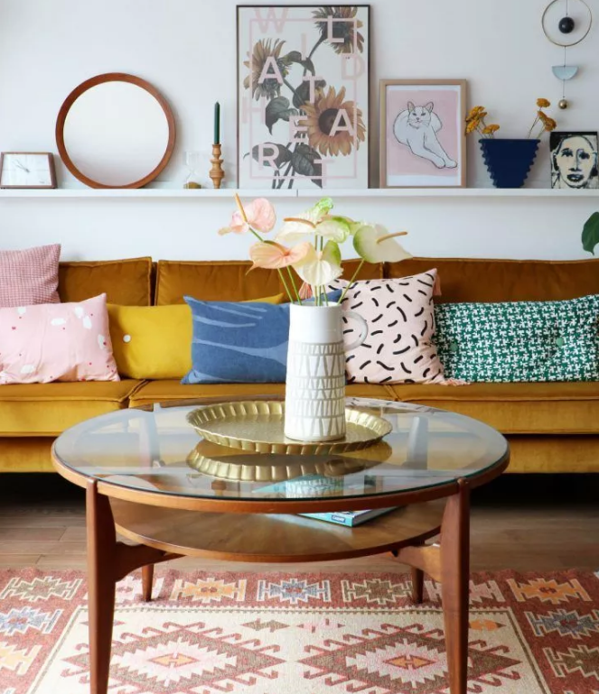 如果不想让空间色彩太过凌乱,最简便的搭配方法是墙面使用浅色调,主体家具中性色调,小型的座椅、挂画或饰品则使用高纯度色调。但高纯度的色彩最好不要超过整体面积的20%。