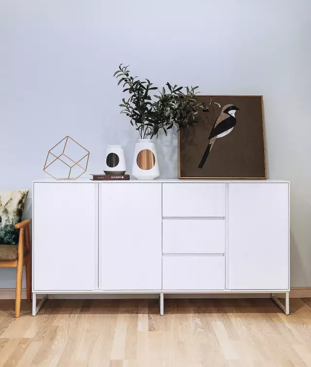 入户左侧有一个通体白色的玄关柜,用来收纳鞋子或其他日常物品,简单又实用,大大保证了门厅的整洁美观。