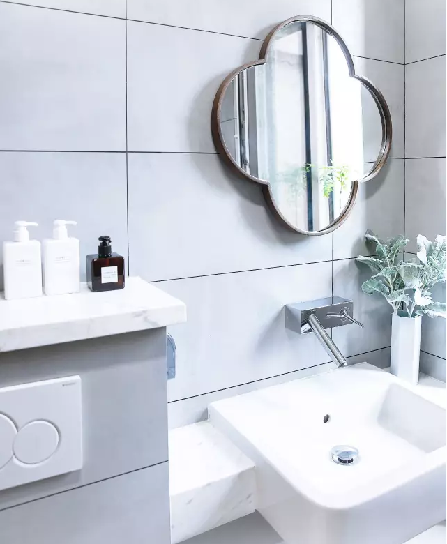 镜面与采光设计,给卫生间带来通透明亮的质感。热爱生活的人,只要花上一点心思,就能为人提供流连忘返的空间。